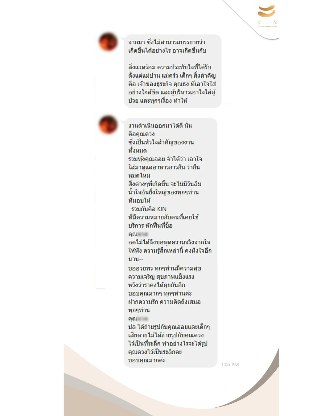 คำพูดจากใจผู้ป่วยที่เคยได้เข้ารับการรักษาจาก KIN