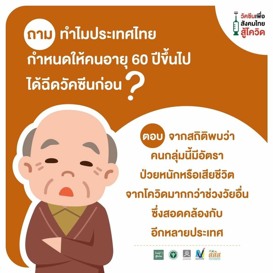 ถาม ทำไมประเทศไทย กำหนดให้คนอายุ 60 ปี ได้ฉีดวัคซีนก่อน?