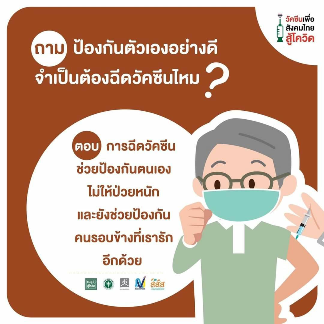 ตอบ การฉีดวัคซีน ช่วยป้องกันตนเอง ไม่ให้ป่วยหนักและยังช่วยป้องกันคนรอบข้างที่เรารักอีกด้วย