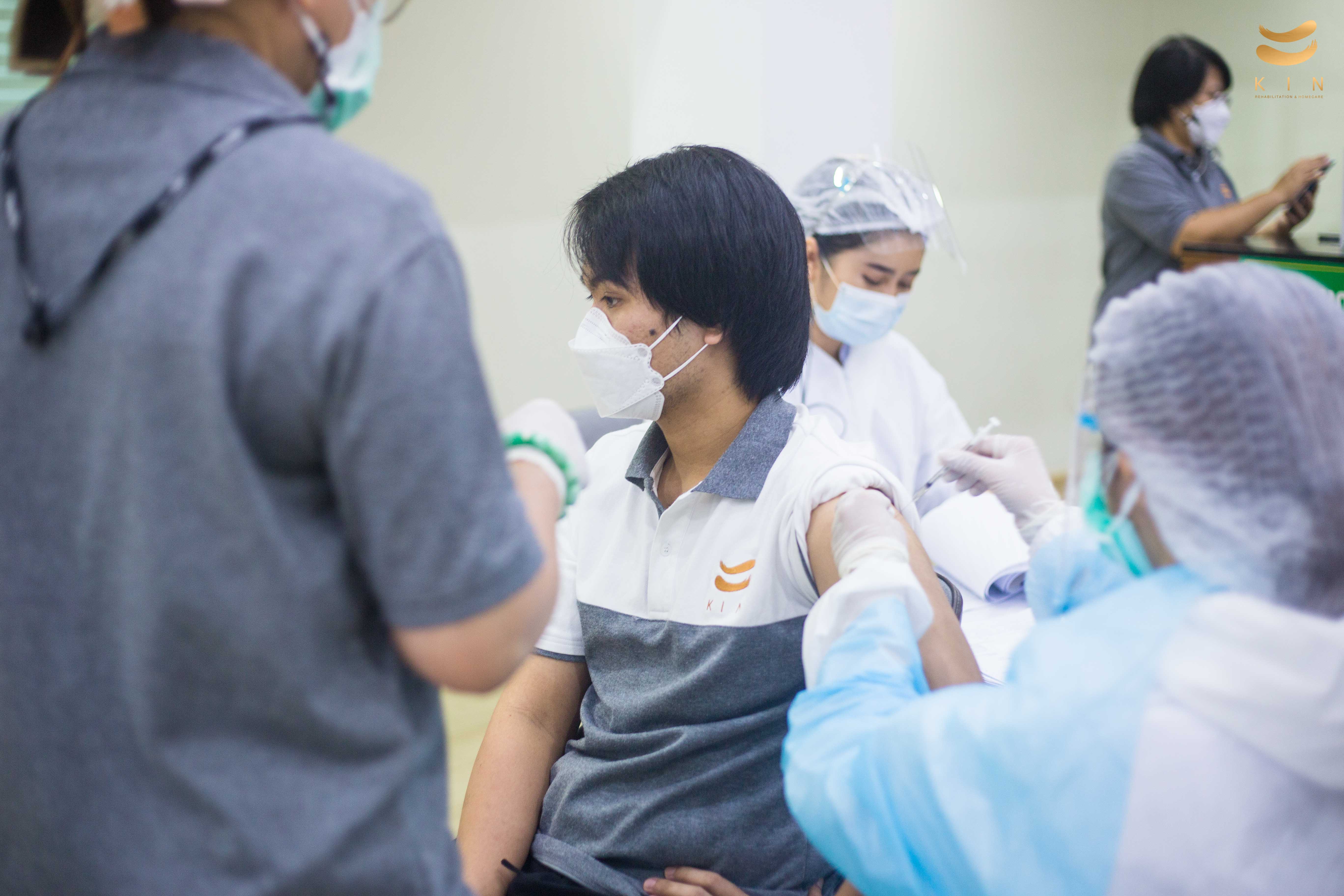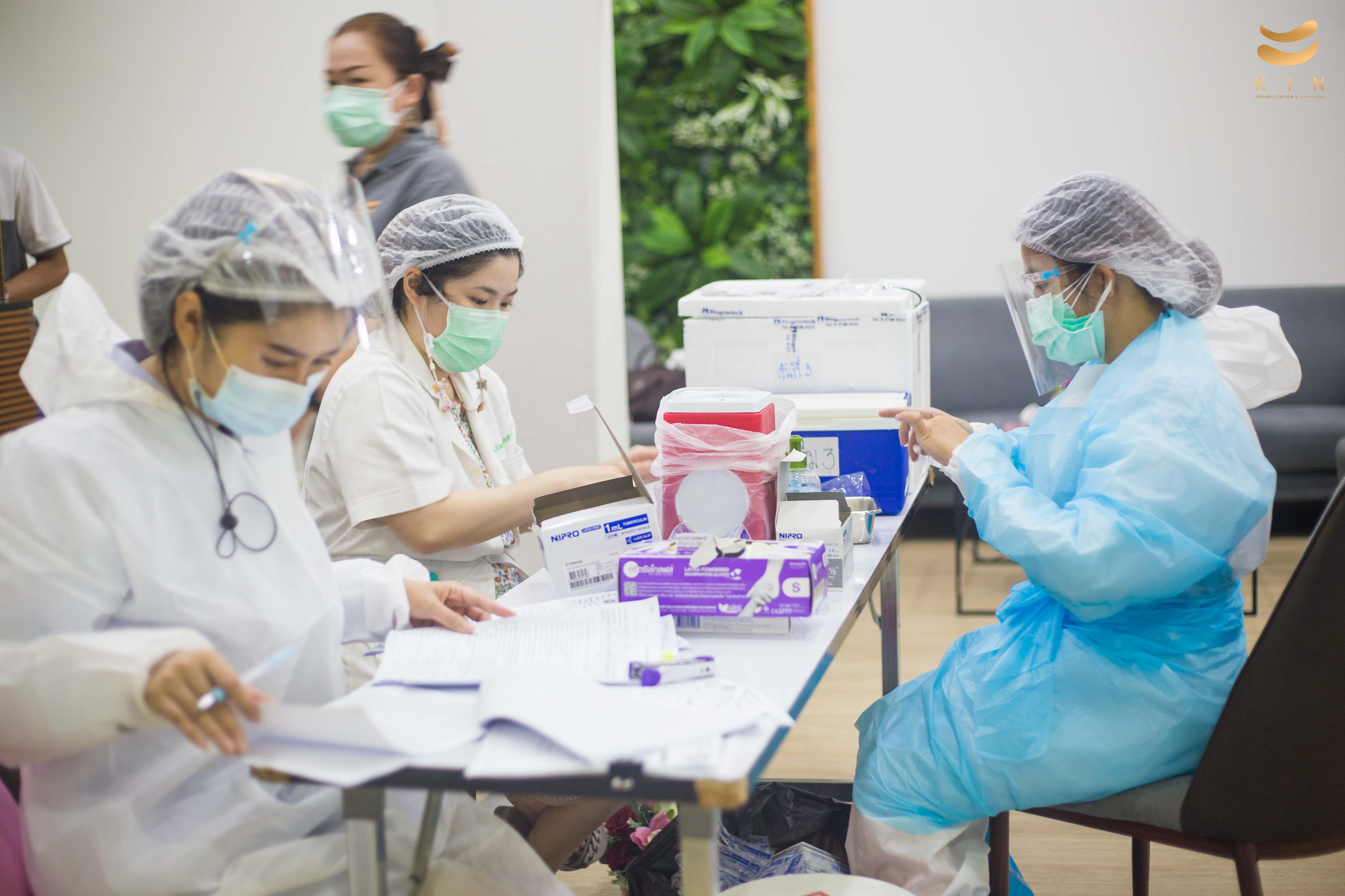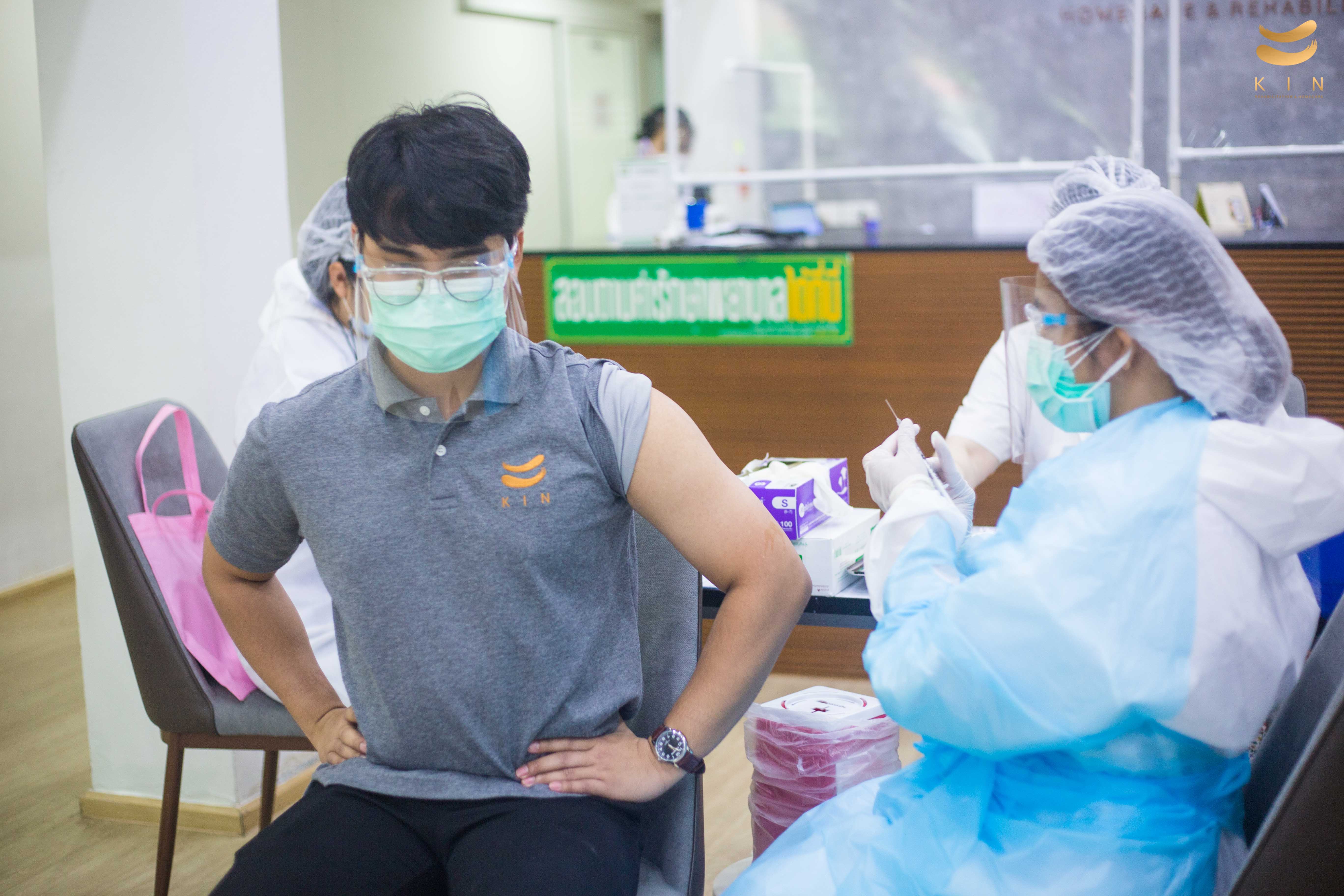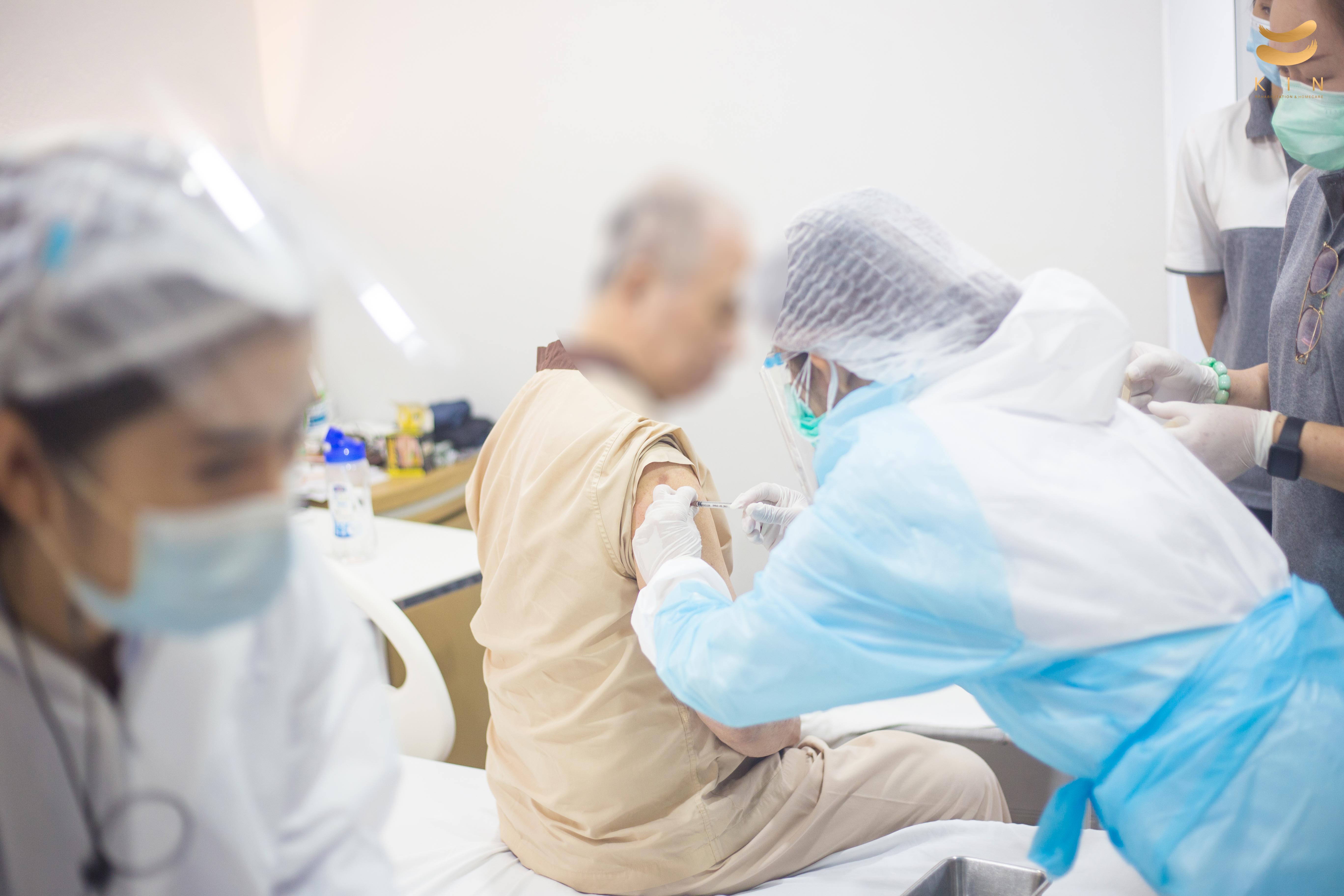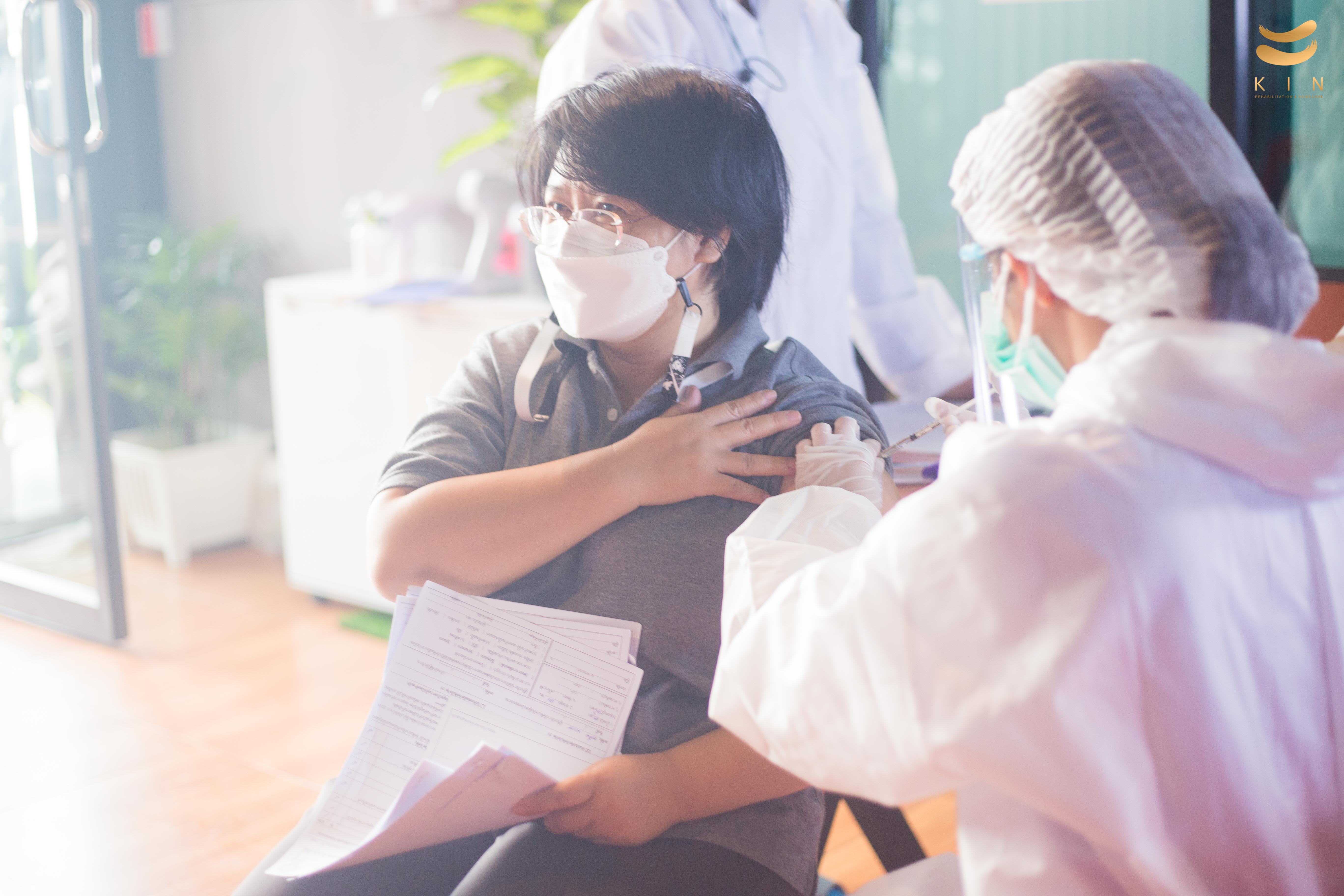บรรยากาศการฉีดวัคซีนโควิด 19 เข็มแรก ณ ศูนย์โรคหลอดเลือดสมอง KIN Rehabilitation and home care