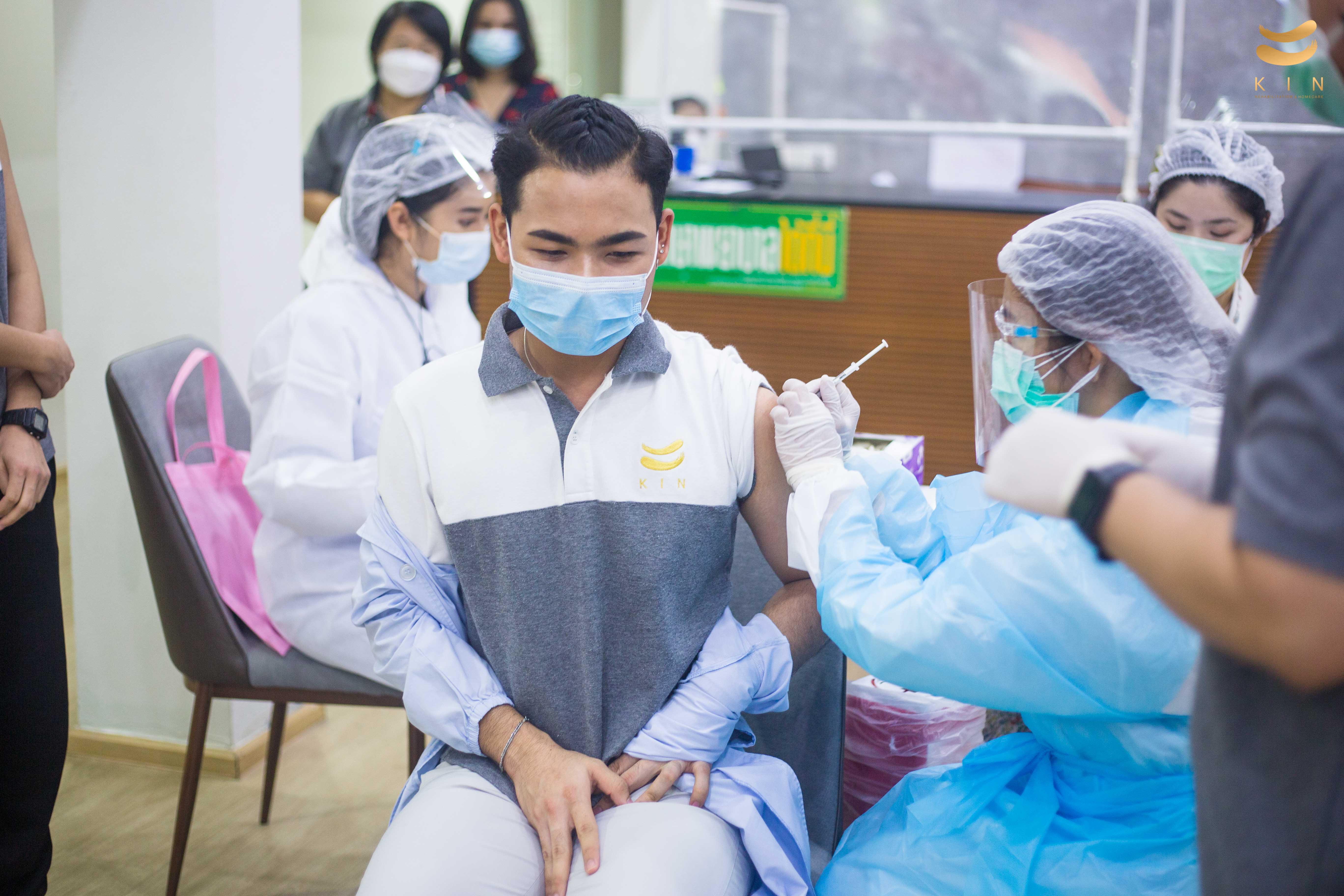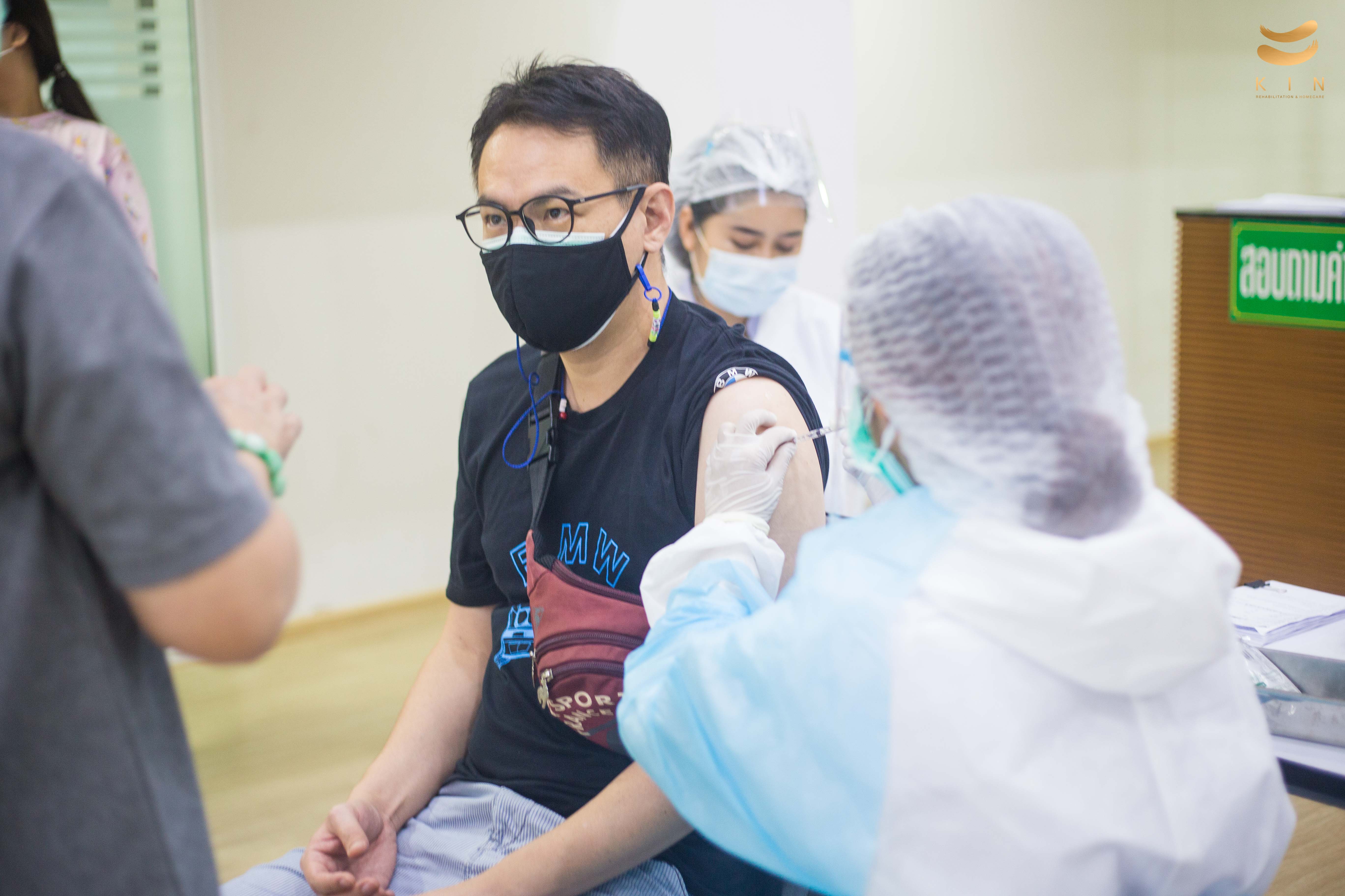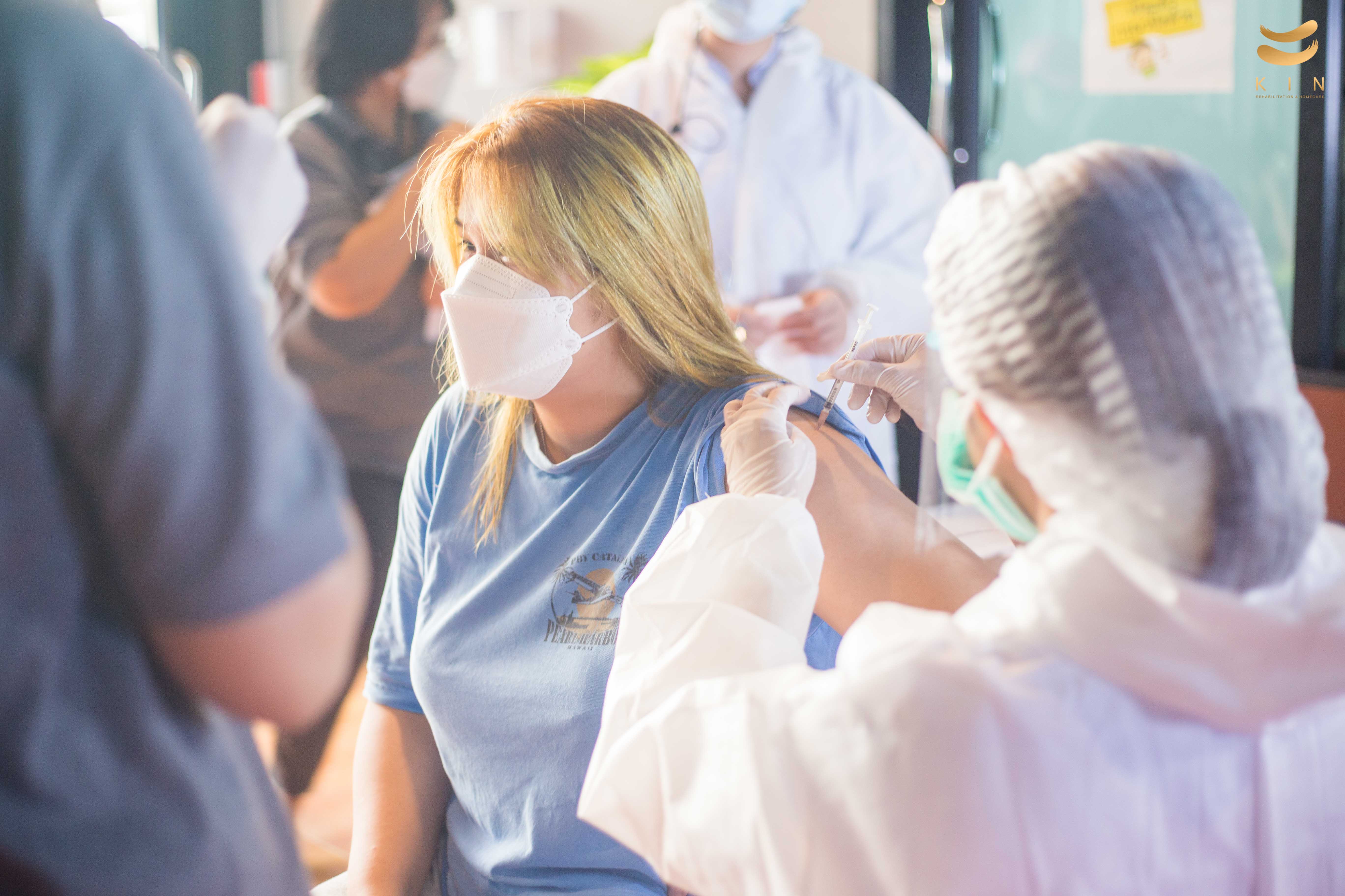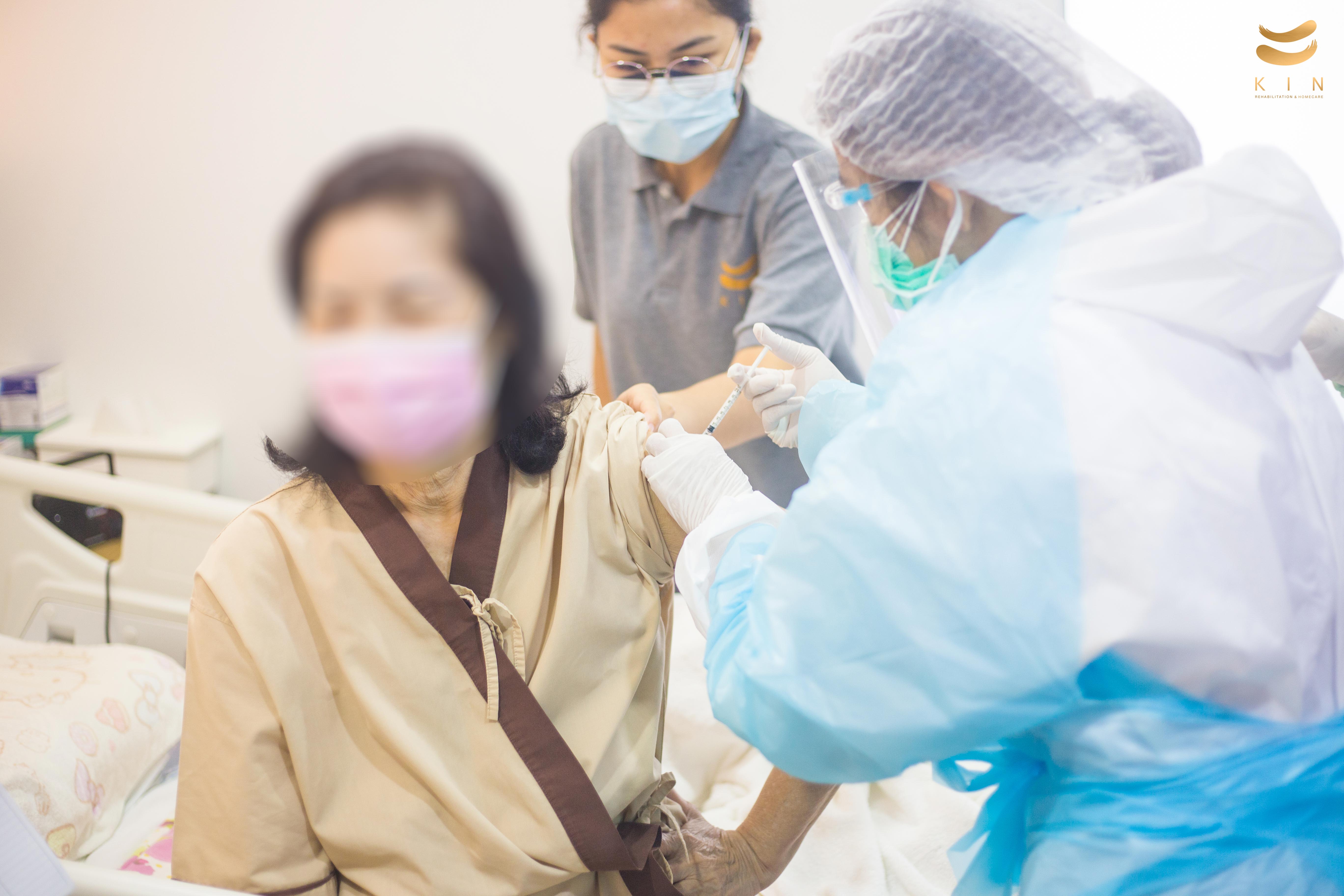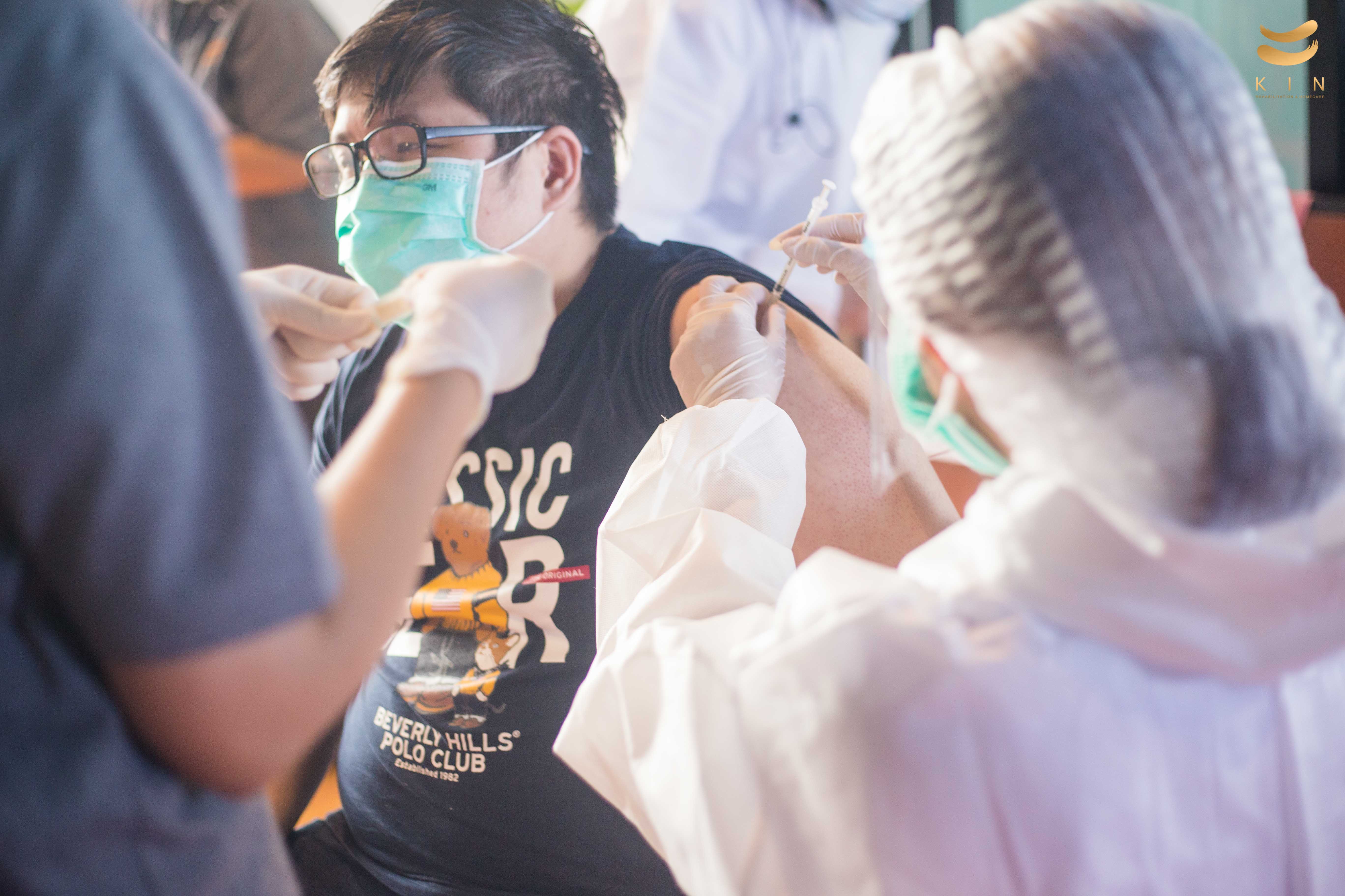 บรรยากาศการฉีดวัคซีนโควิด 19 เข็มแรก ณ ศูนย์โรคหลอดเลือดสมอง KIN Rehabilitation and home care