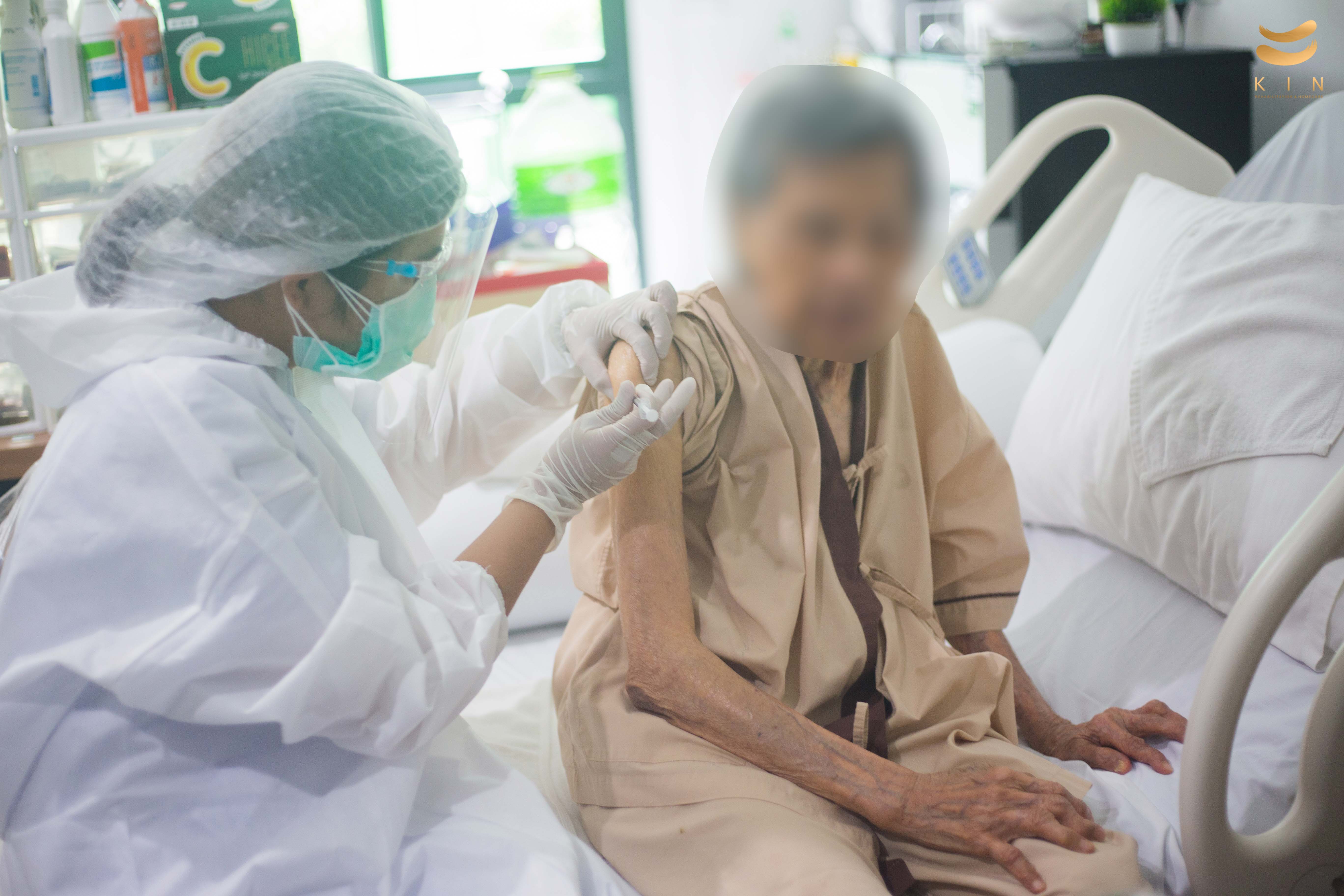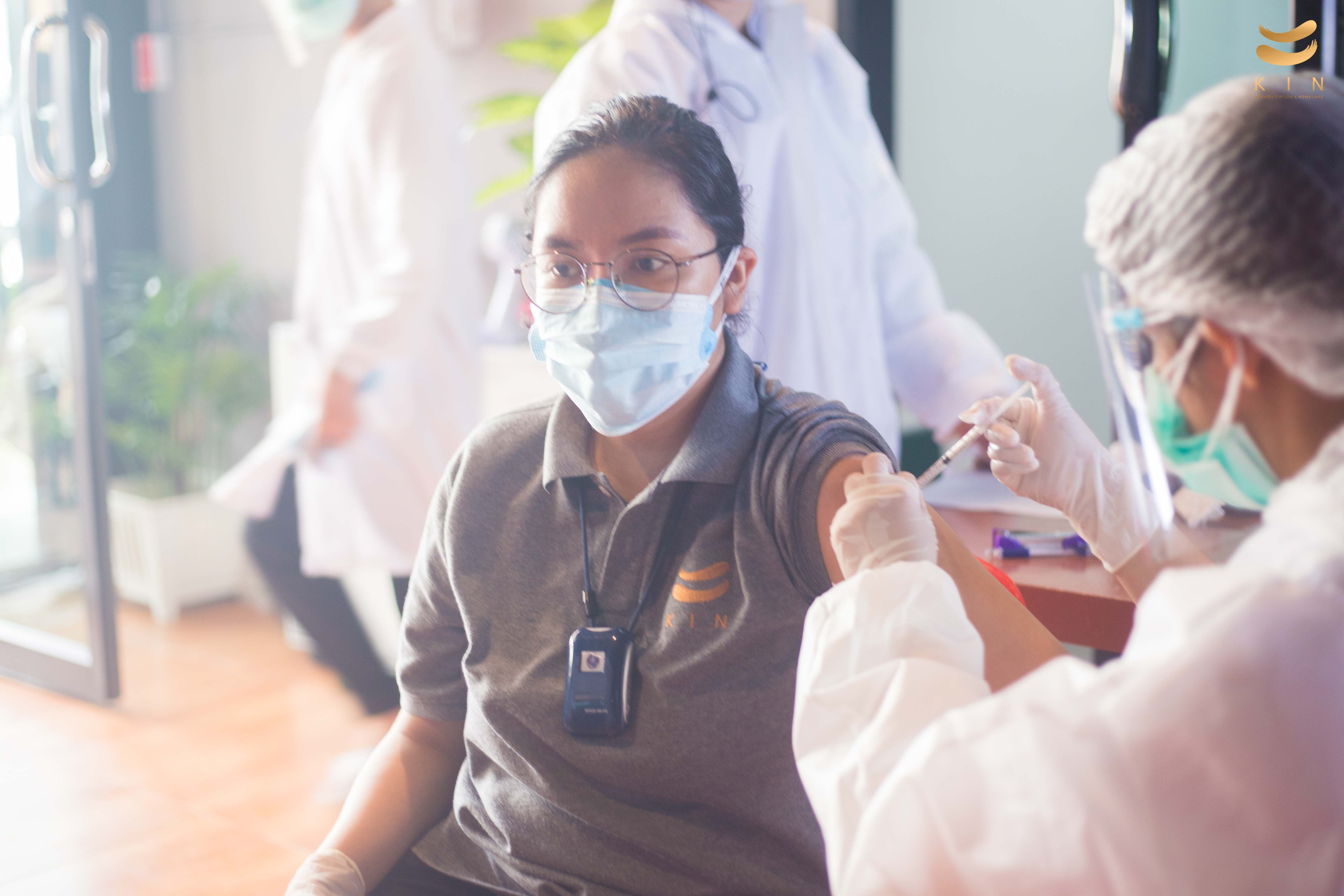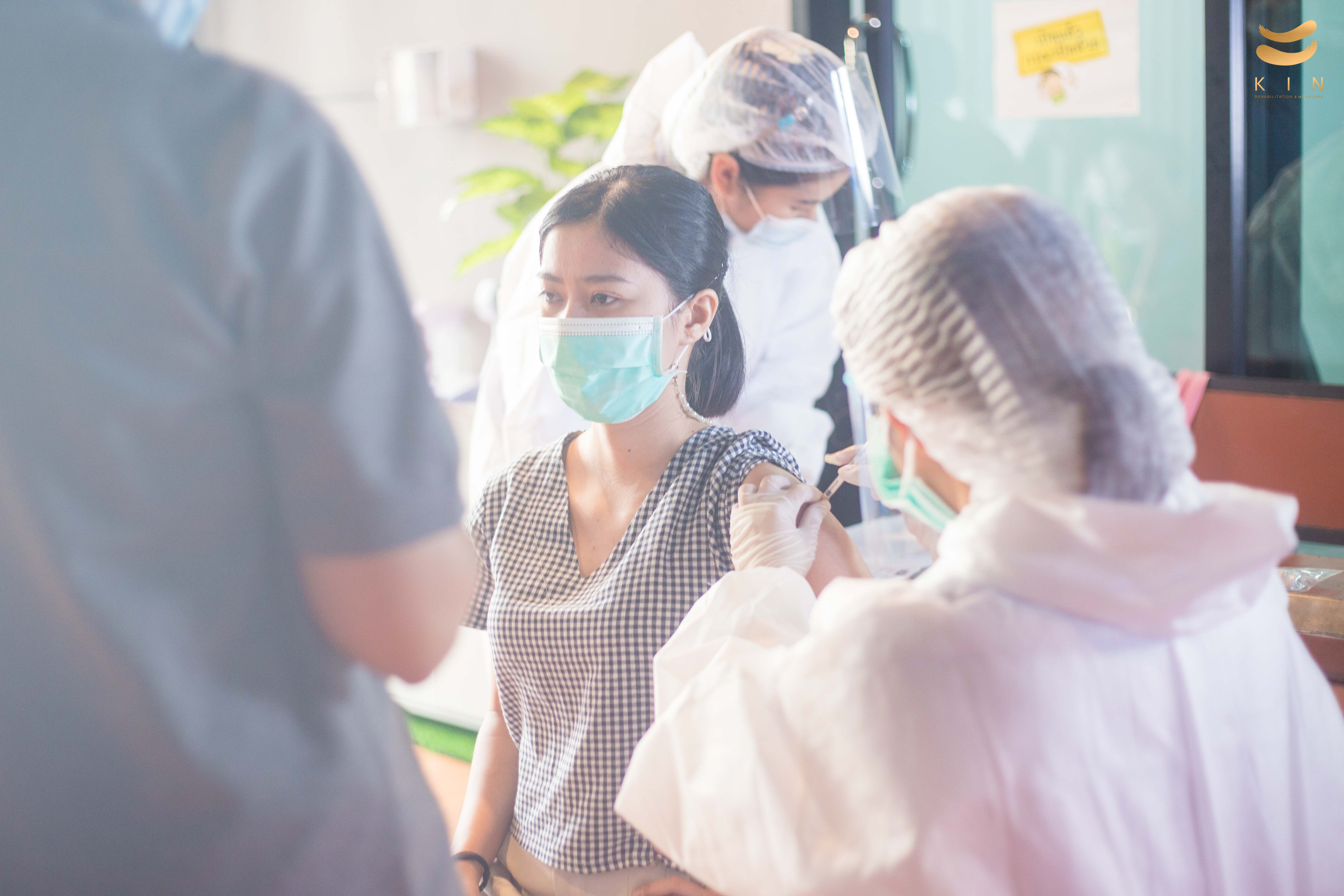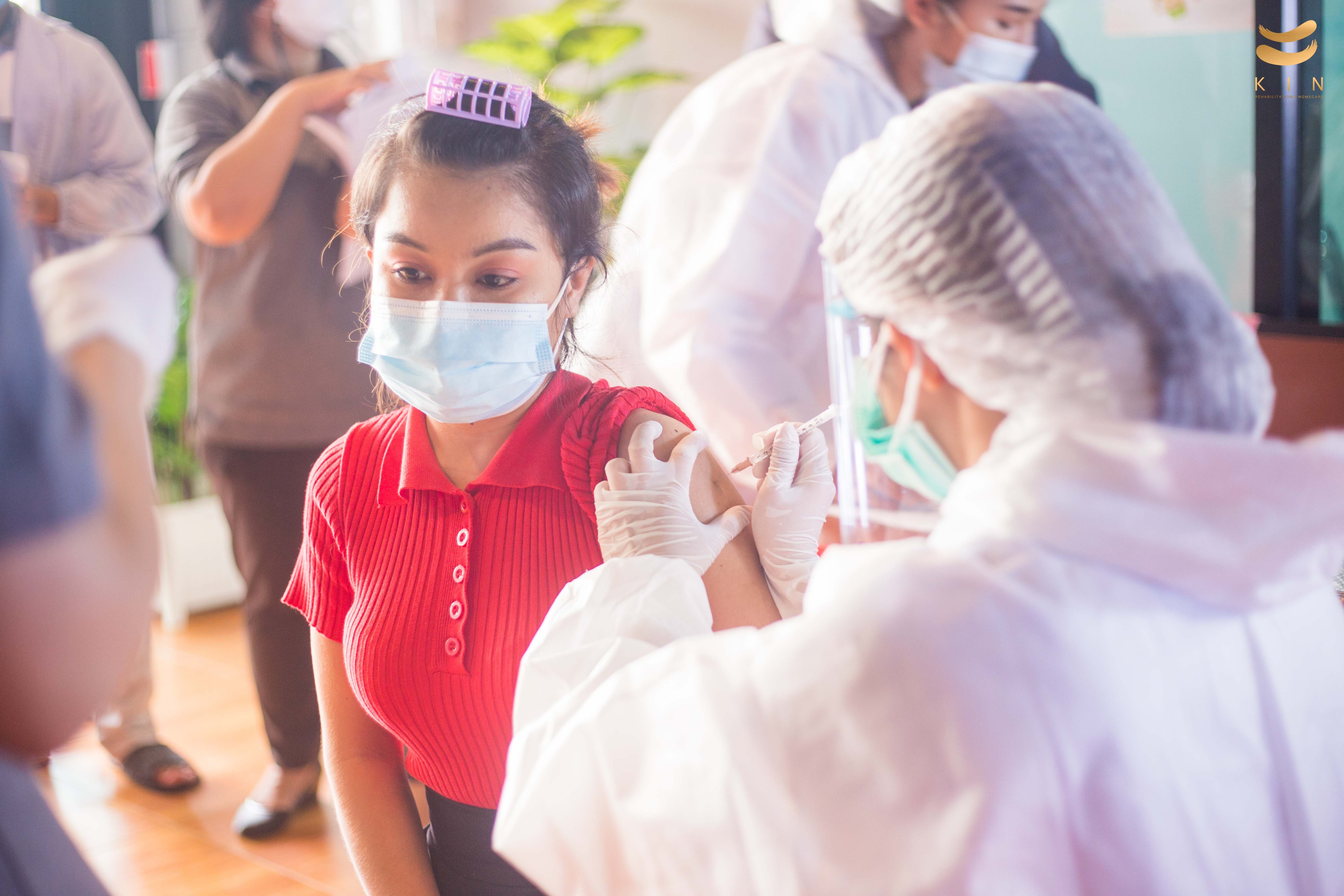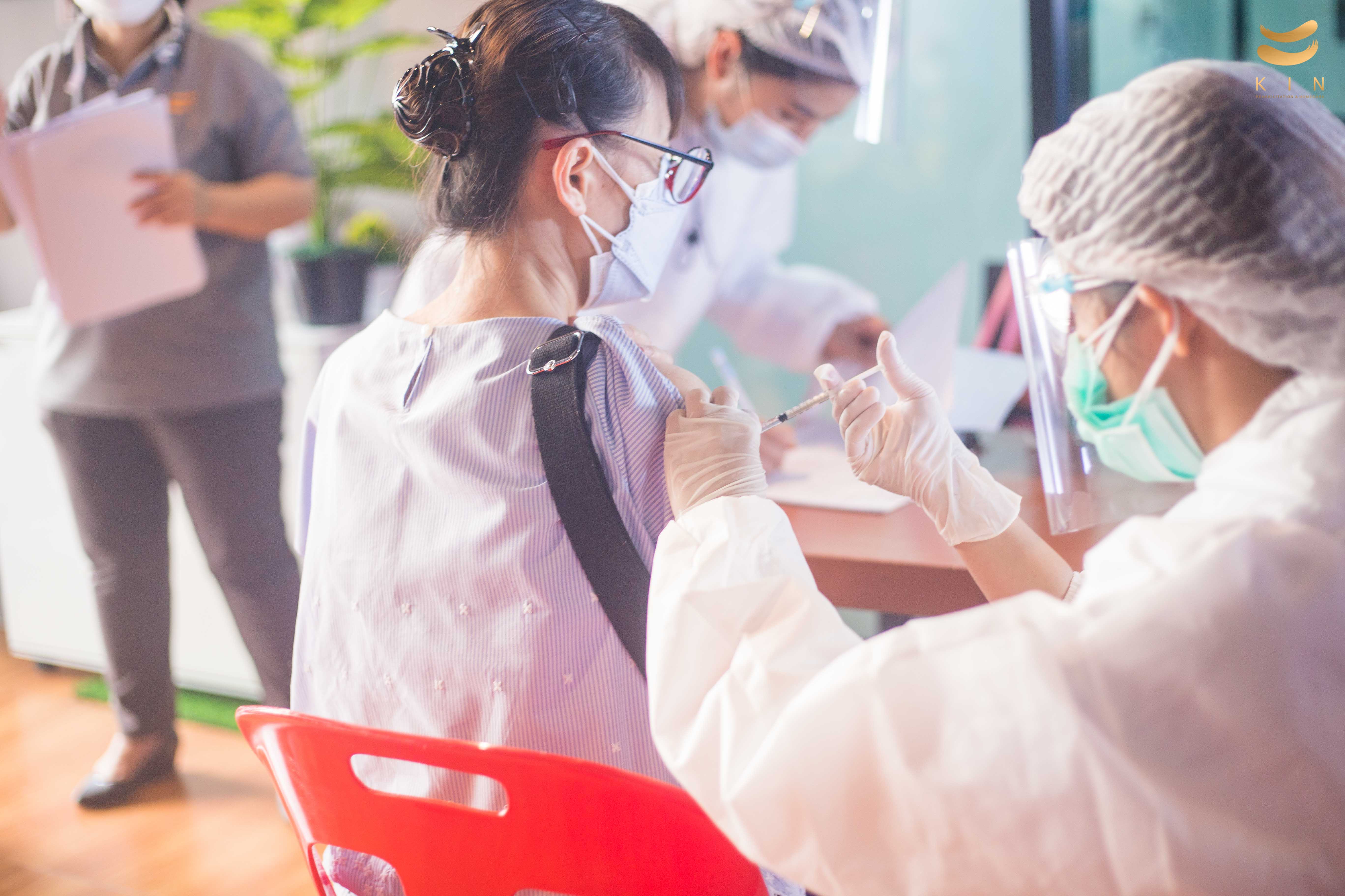 บรรยากาศการฉีดวัคซีนโควิด 19 เข็มแรก ณ ศูนย์โรคหลอดเลือดสมอง KIN Rehabilitation and home care