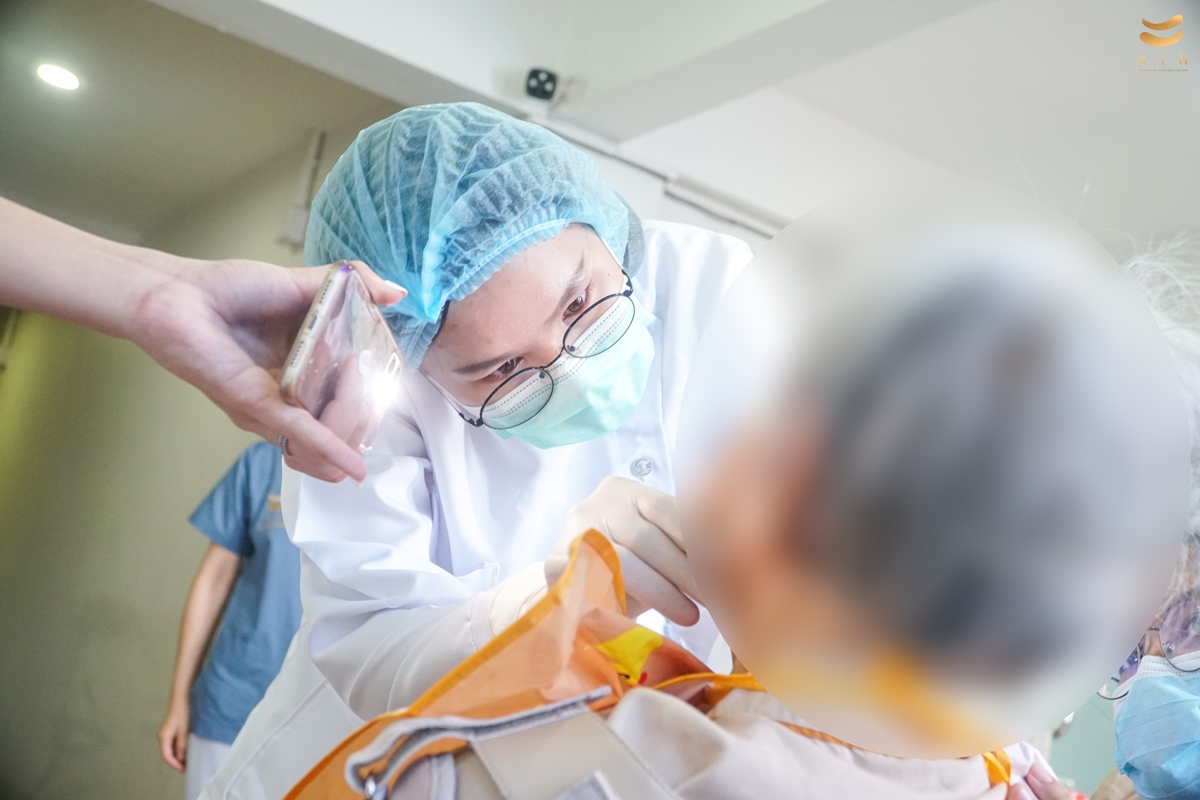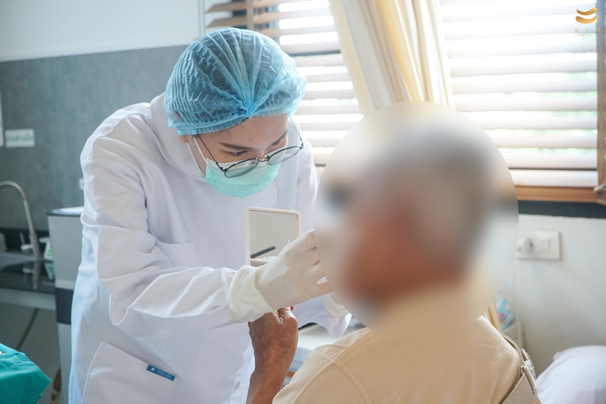 เนื่องจากสถานการณ์โควิค และอาการของคนไข้ ไม่สามารถออกไปตรวจสุขภาพช่องปากได้ ทางทีมงานจึงเห็นความสำคัญ
