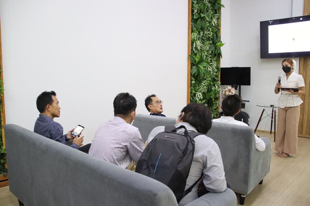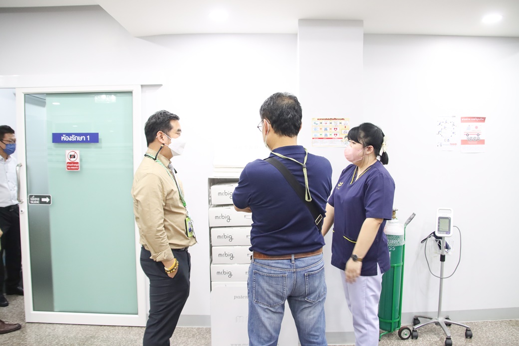 คณะผู้มาเยี่ยมชมดูงาน ประกอบด้วย นายแพทย์บัลลังก์ อุปพงษ์ รองอธิบดีกรมวิทยาศาสตร์การแพทย์ ดร. มณี เตชวิริยะ Managing Director MT Business Consultant Co. Ltd. นายแพทย์กิตติชัย แก้วดี กรรมการผู้จัดการ บริษัท ไซมิส เวลเนส จำกัด รองศาสตรจารย์ ดร. นายแพทย์ ศักดา อาจองค์ วัลลิภากร รองคณบดีฝ่ายนโยบายและแผนและประกันคุณภาพ & ผู้ช่วยคณบดีฝ่ายวิจัยและนวัตกรรม มหาวิทยาลัยกรุงเทพธนบุรี
