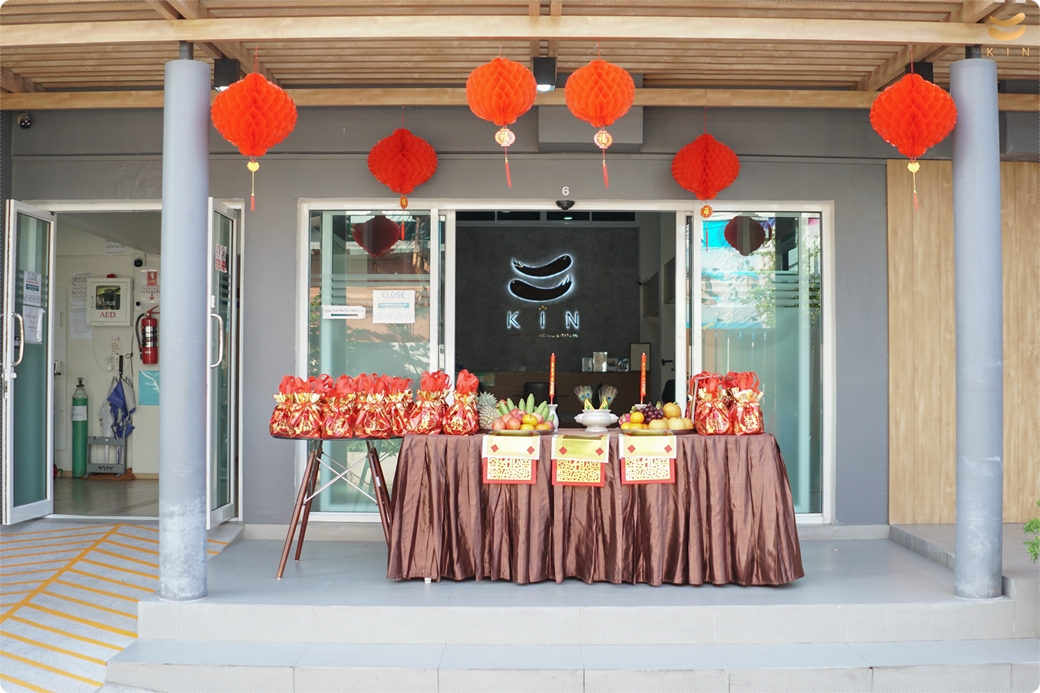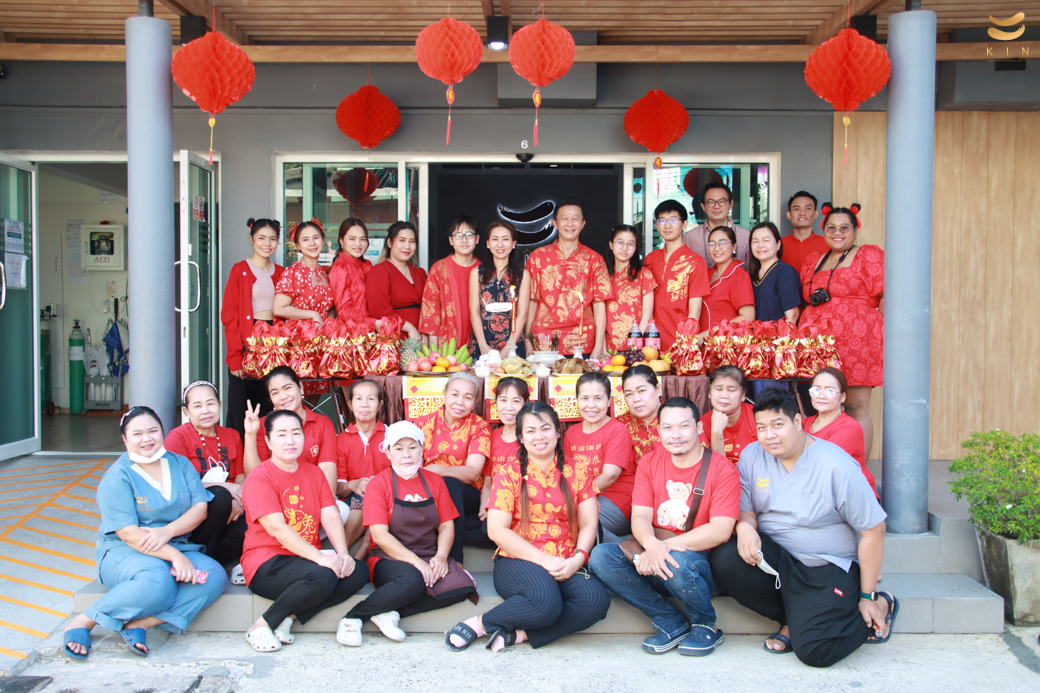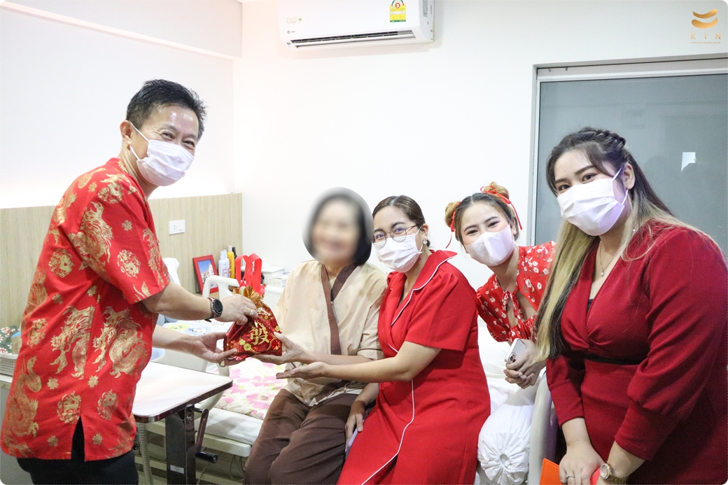 แก่ผู้เข้ารับบริการทุกท่าน ให้โชคดี มั่งมีศรีสุข สุขภาพแข็งแรง ต้อนรับเทศกาลตรุษจีน ด้วยส้มมงคลแก่ผู้มารับบริการและแตะเอี้ยกับพนักงานคิน