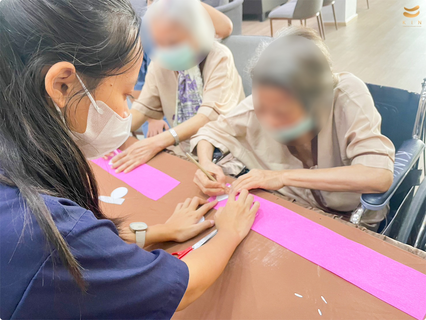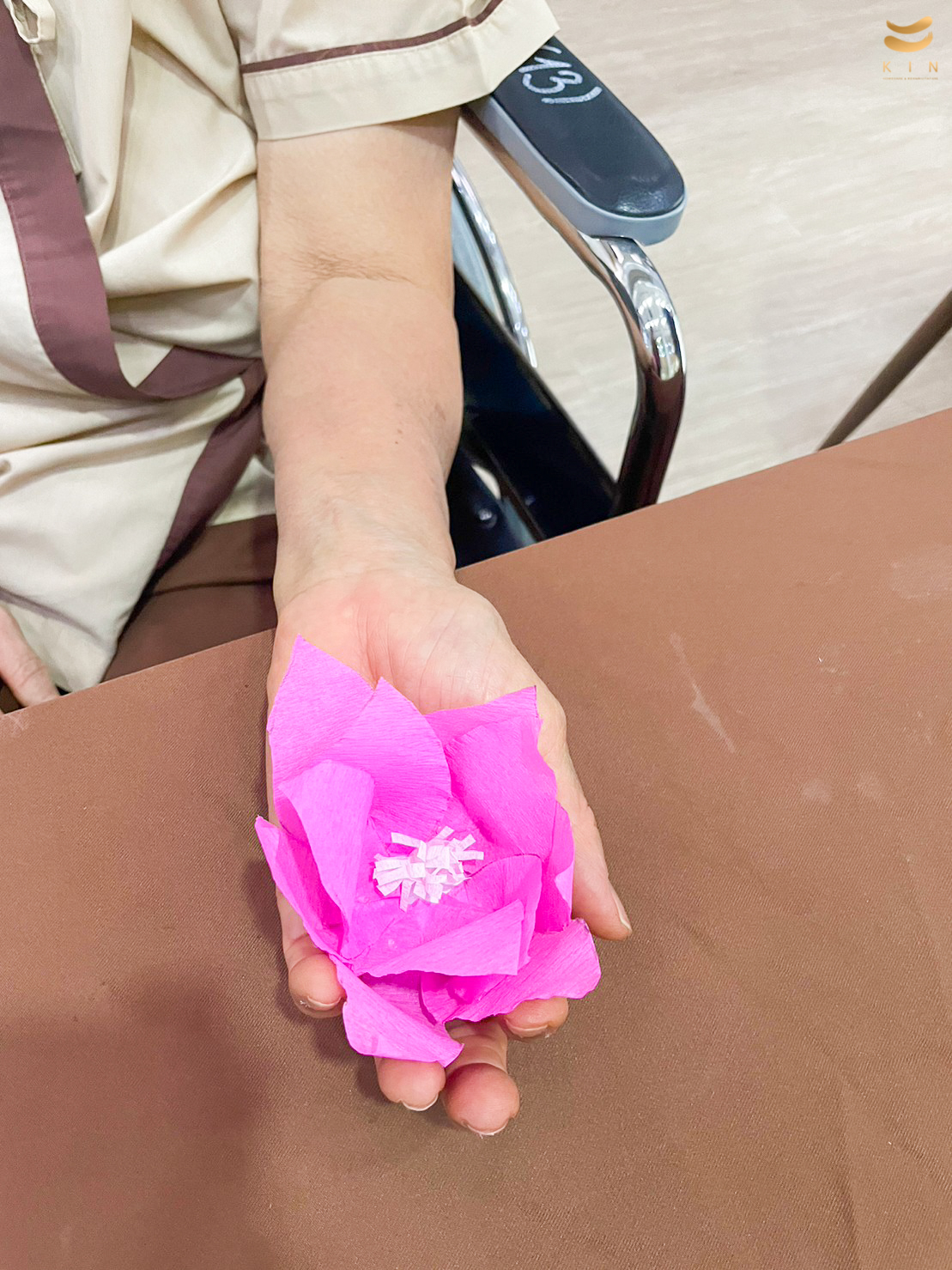 การทำกิจกรรมกลุ่ม นอกจากจะสร้างสังคมแล้ว ยังช่วยสร้างพัฒนาทักษะร่วมกับเพื่อน ๆ คนอื่น ๆ ด้วย ซึ่งจะทำให้การพัฒนาทักษะด้านกายภาพดีมากยิ่งขึ้น ซึ่งกิจกรรมสัปดาห์นี้คือการทำดอกบัวบานสะพรั่ง