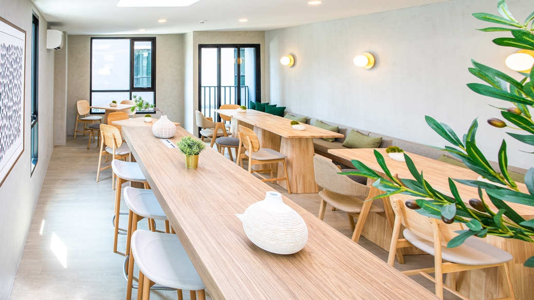 นอกจากนี้ภายในโครงการยังมีโรงแรมที่ออกแบบห้องพักหรูหรา แบบ Universal Design ซึ่งเหมาะกับทุกเพศทุกวัย ทั้งเด็ก และผู้ใหญ่ ผู้สูงอายุ รวมทั้งผู้พิการอีกด้วย และที่สะดวกสบายมาก ๆ กับผู้ใช้รถเข็น ซึ่งในโครงการนี้นอกจากห้องพักแล้ว เรายังมีบริการ ออนเซ็น และนวดอโรม่า, ห้องจัดประชุมสัมมนา, ร้านกาแฟ และร้านอาหาร ที่ตั้งอยู่ภายในโครงการ สำหรับผู้ที่มาใช้บริการ นอกจากนั้นผู้ที่พักสามารถออกกำลังกายในฟิสเนส เพื่อเสริมสร้างสุขภาพที่ดีได้ในโรงแรม