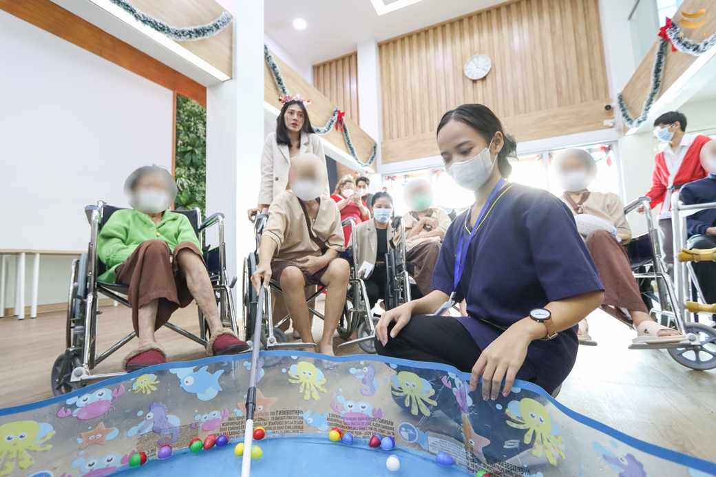 ศูนย์ฟื้นฟูผู้ป่วยโรคหลอดเลือดสมองและดูแลผู้สูงอายุ ภายในงานมีการจัดกิจรรมให้ผู้เข้ารับบริการได้มีส่วนรวมสนุกใน