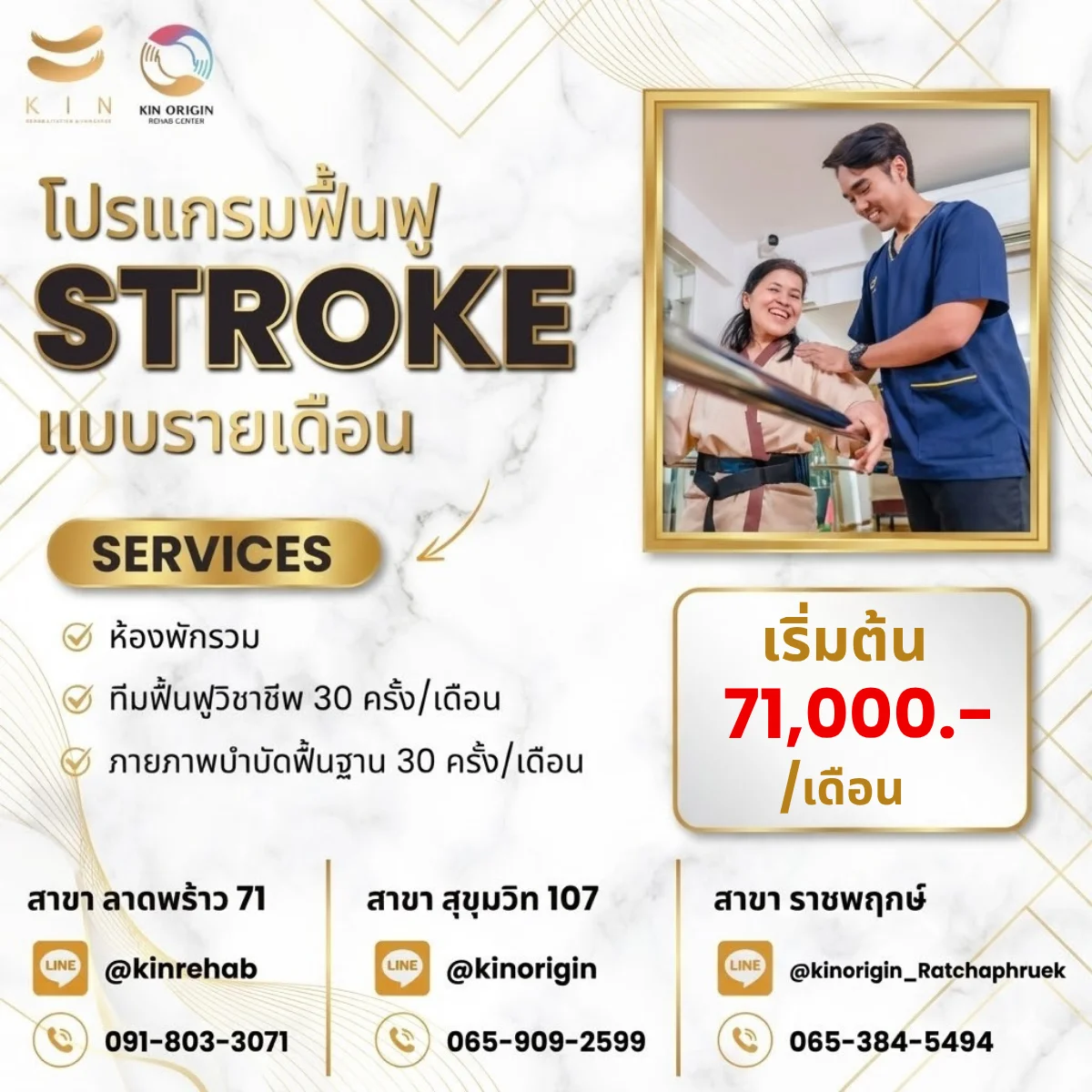 ฟื้นฟูหลัง Stroke ครบจบในโปรเดียวที่ Kin Rehab เริ่มต้น 71,000 บาท