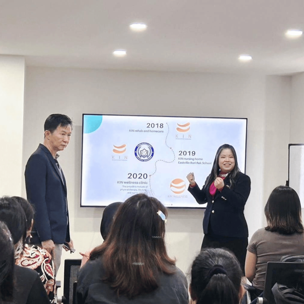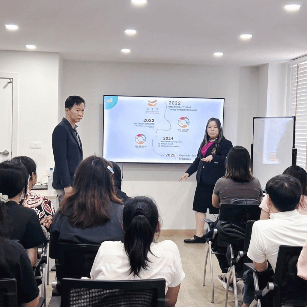 เมื่อวันที่ 19 พฤษจิกายน 2567 ที่ผ่านมา คณะนักศึกษาปริญญาโท หลักสูตรนานาชาติ จากวิทยาลัยวิทยาศาสตร์สาธารณสุข จุฬาลงกรณ์มหาวิทยาลัย ในการเข้าศึกษาดูงานด้านการดูแลและฟื้นฟูสุขภาพแบบองค์รวม โดยคุณธงชัย โชคถนอมทรัพย์ ประธานกรรมการบริษัท KIN - Rehabilitation & Homecare / KinOrgin Wellness Rehab Center KIN ORIGIN HEALTHCARE CENTER ให้การต้อนรับและบรรยายในธุรกิจของ Kin Rehab / Kin Origin Healthcare