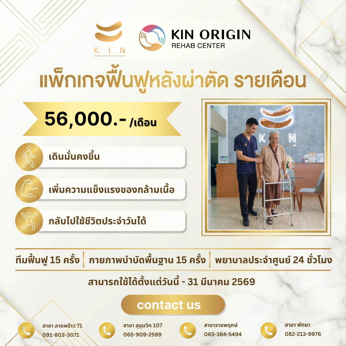 โปรแกรมฟื้นฟูหลังผ่าตัดรายเดือน โดยนักกายภาพวิชาชีพ และผู้ช่วยนักกายภาพบำบัด ราคา 56,000 บาท